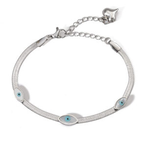 • Design: A classic flat herringbone (snake) chain inlaid with five evil eye accents in alternating cobalt blue and crisp white enamel.