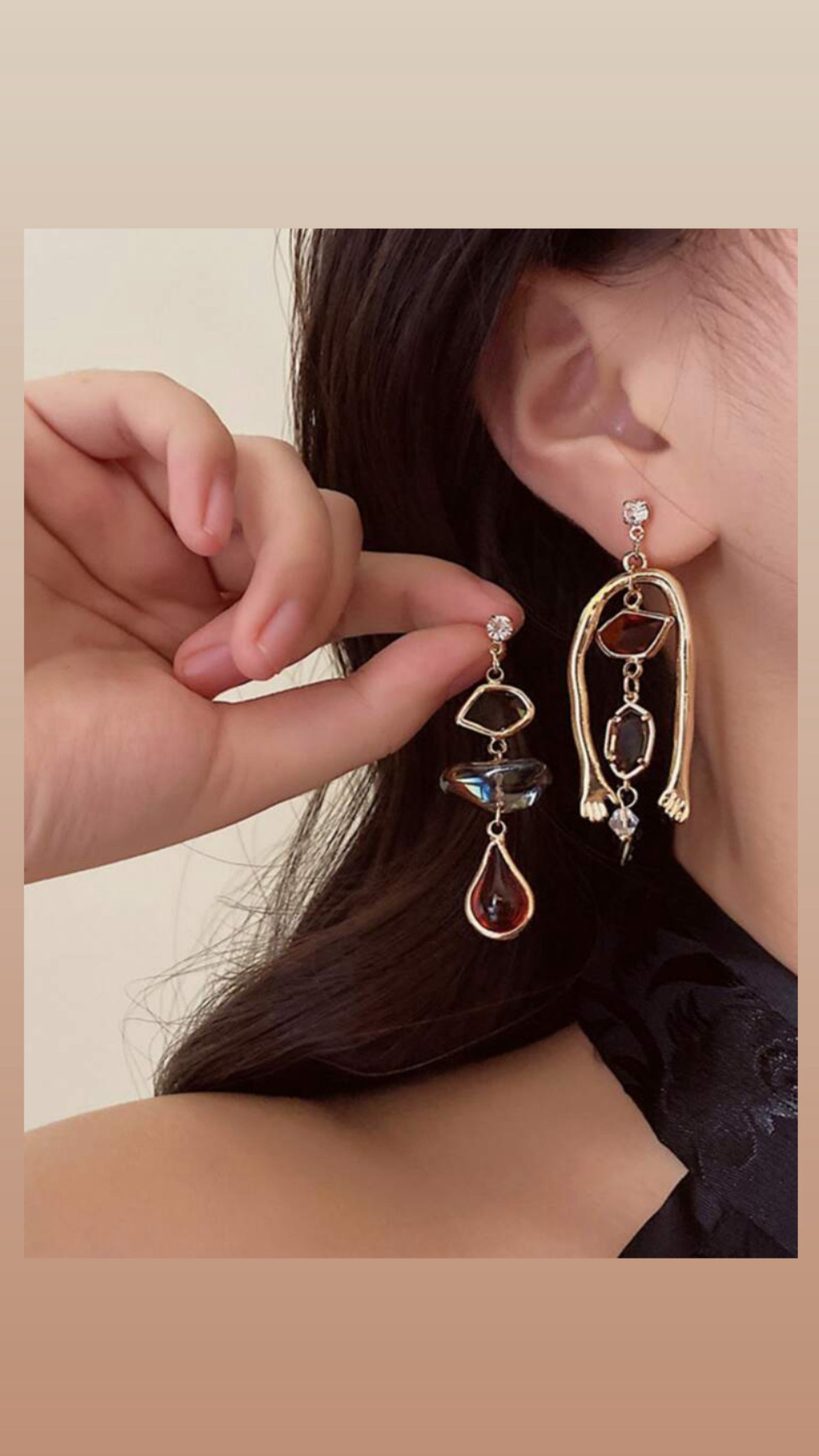 Style: A modern art-inspired statement piece that brings a touch of avant-garde elegance to any look. They are perfect for elevating a simple outfit or complementing a sophisticated evening dress.