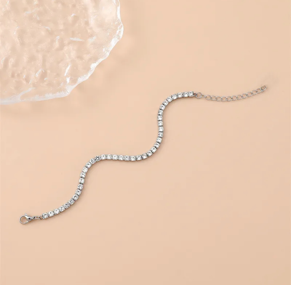 Design: Timeless tennis bracelet featuring a row of dazzling crystals