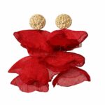 Make an unforgettable entrance with the Crimson Petal Statement Drops, a stunning fusion of bold color and delicate texture. These earrings feature a hammered, gold-toned circular stud that anchors multiple layers of voluminous, vibrant red organza fabric. Designed to mimic the organic beauty of a blooming flower, the lightweight petals create a dramatic, three-dimensional silhouette that sways gracefully with every movement.