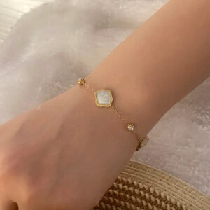Refined with a bold edge, the Emerald Axis Dual-Tone Bracelet features a sleek gold-and-silver band accented with striking square-cut emerald green stones. Designed to sit elegantly on the wrist, this contemporary piece blends structure and sparkle—perfect for elevating both everyday and evening looks.