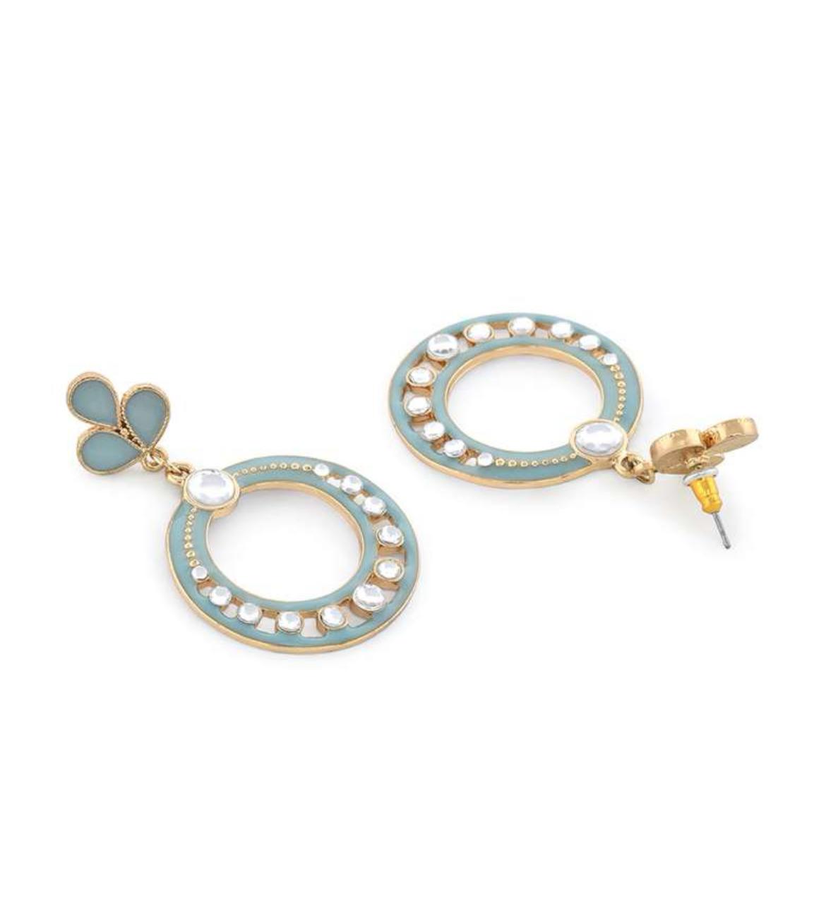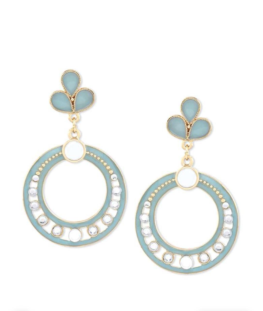 Material: Gold-plated alloy with aqua enamel finish and crystal detailing