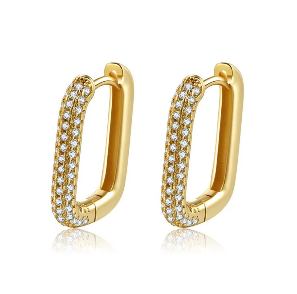 Design: These elegant, rectangular hoops feature a sleek, polished gold-plated frame. The front and inner side of each earring are intricately embellished with a double row of sparkling, handset pavé crystals.