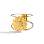 Inspired by the beauty of blooming florals, this elegant gold cuff features a sculpted flower centrepiece on a sleek open band. Designed to balance femininity with strength, it’s perfect for elevating both casual and dressy looks.