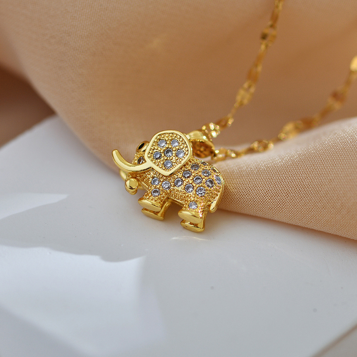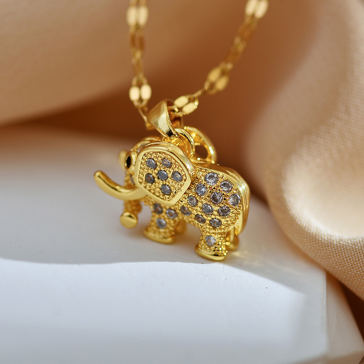 • Design: Intricately detailed elephant pendant with a raised trunk and crystal-accented body.