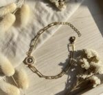 • Design: Evil eye charm with modern paperclip chain links