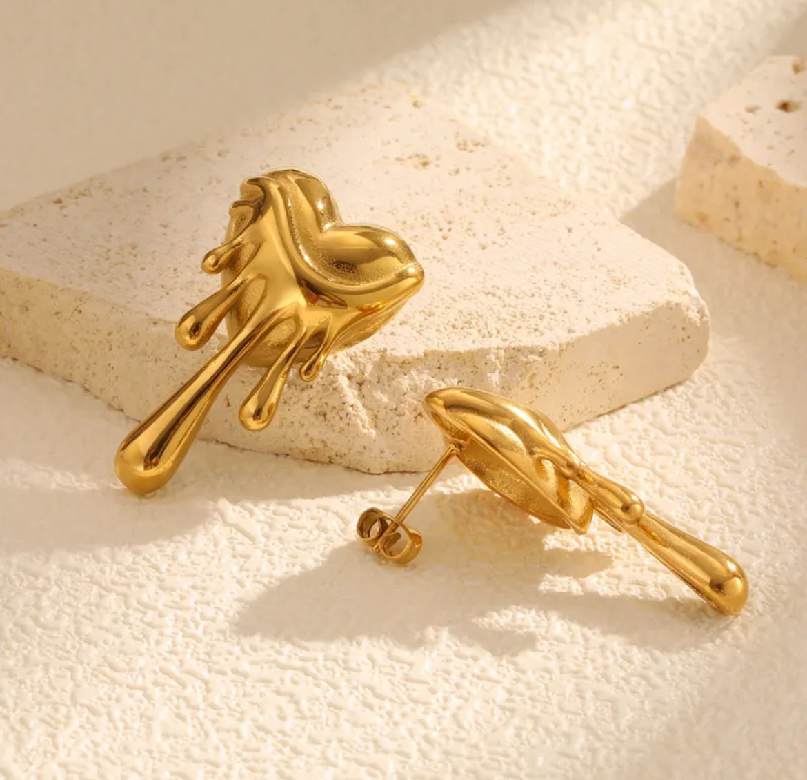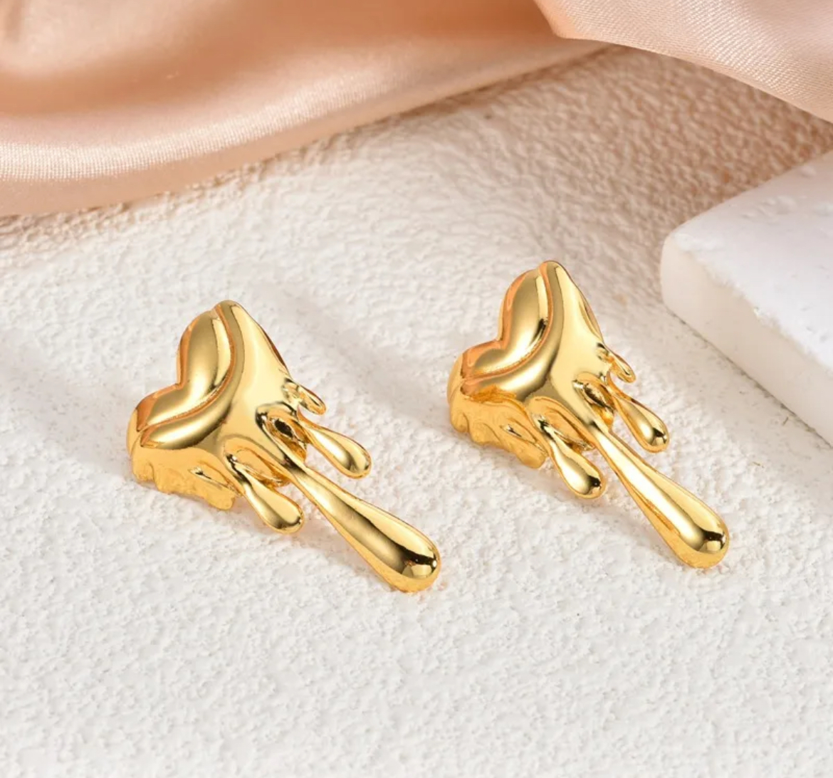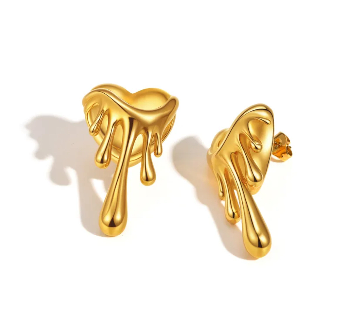 Design: A unique, playful design featuring a heart shape with a “melting” or dripping effect