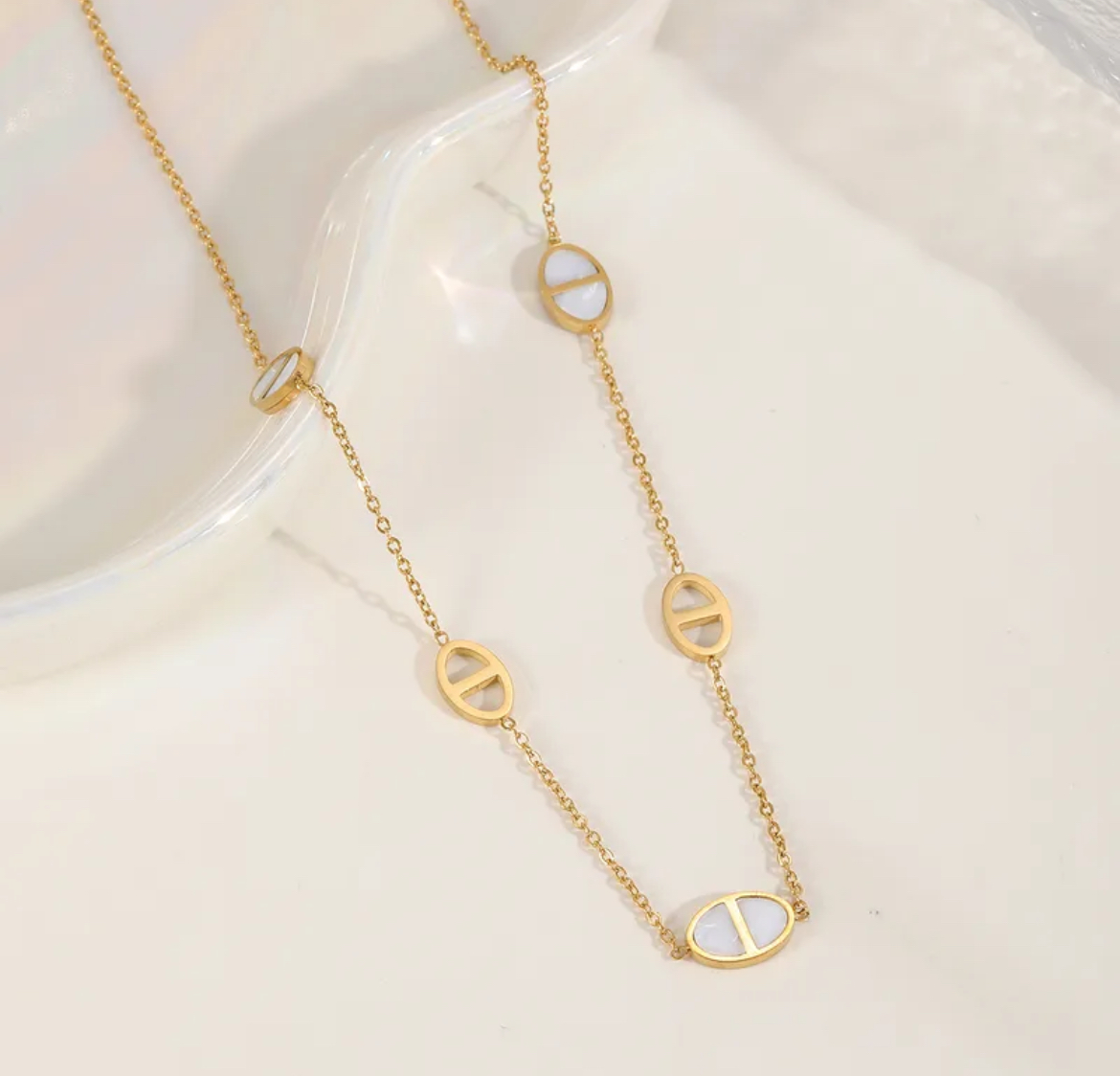 Design: Elegant necklace with oval motifs and mother-of-pearl inlay