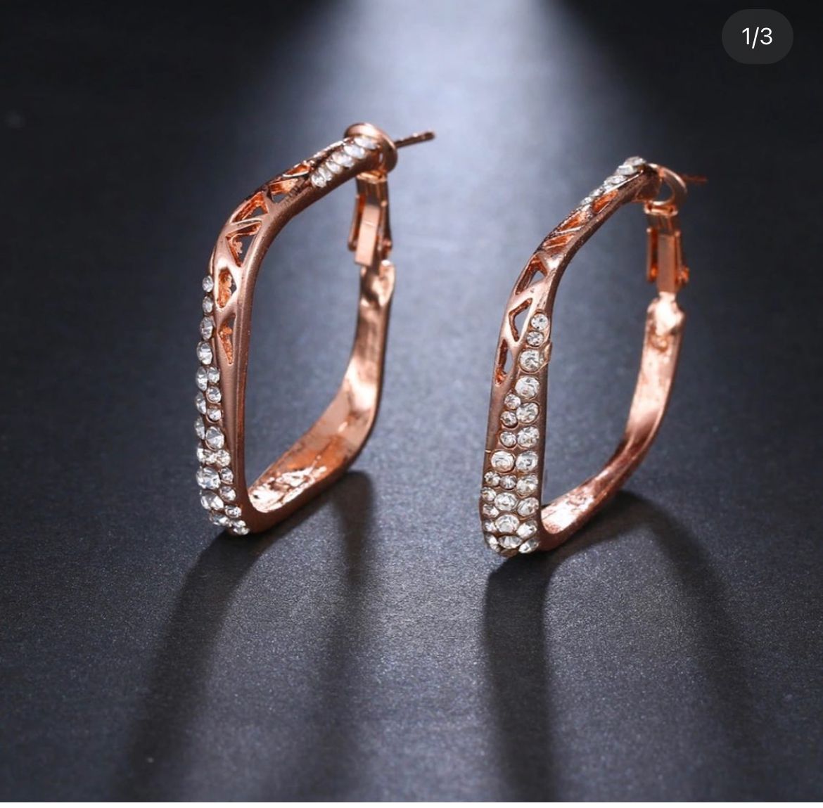 Material: Polished rose gold-toned metal with clear simulated diamonds