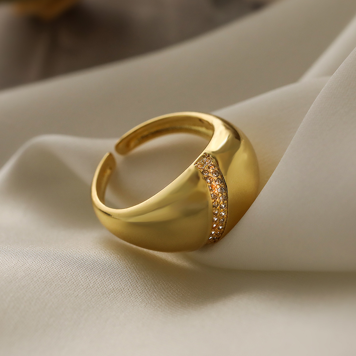 Material: Crafted from high-quality 18K gold-plated metal, this ring provides a rich, lasting luster. The brilliant pavé crystals are meticulously set to catch the light from every angle.