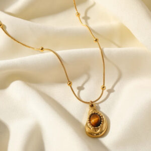 • Chain: A classic, shimmering gold-toned rope chain that provides a soft, elegant drape.